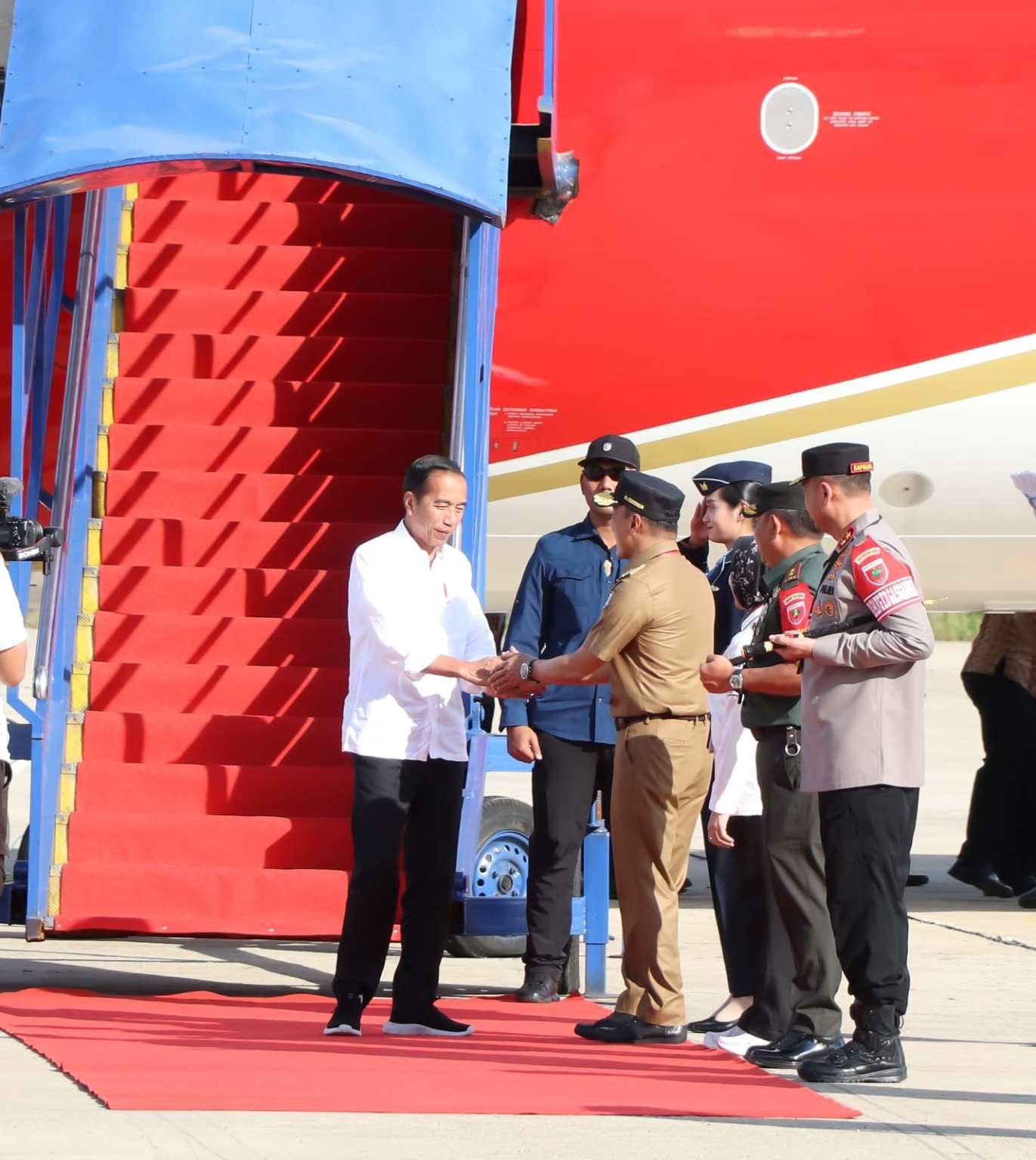 Kedatangan Presiden Joko Widodo beserta rombongan disambut langsung Penjabat (Pj) Gubernur Sulbar, Prof Zudan Arif Fakrulloh dan jajaran Forkopimda Sulbar.
