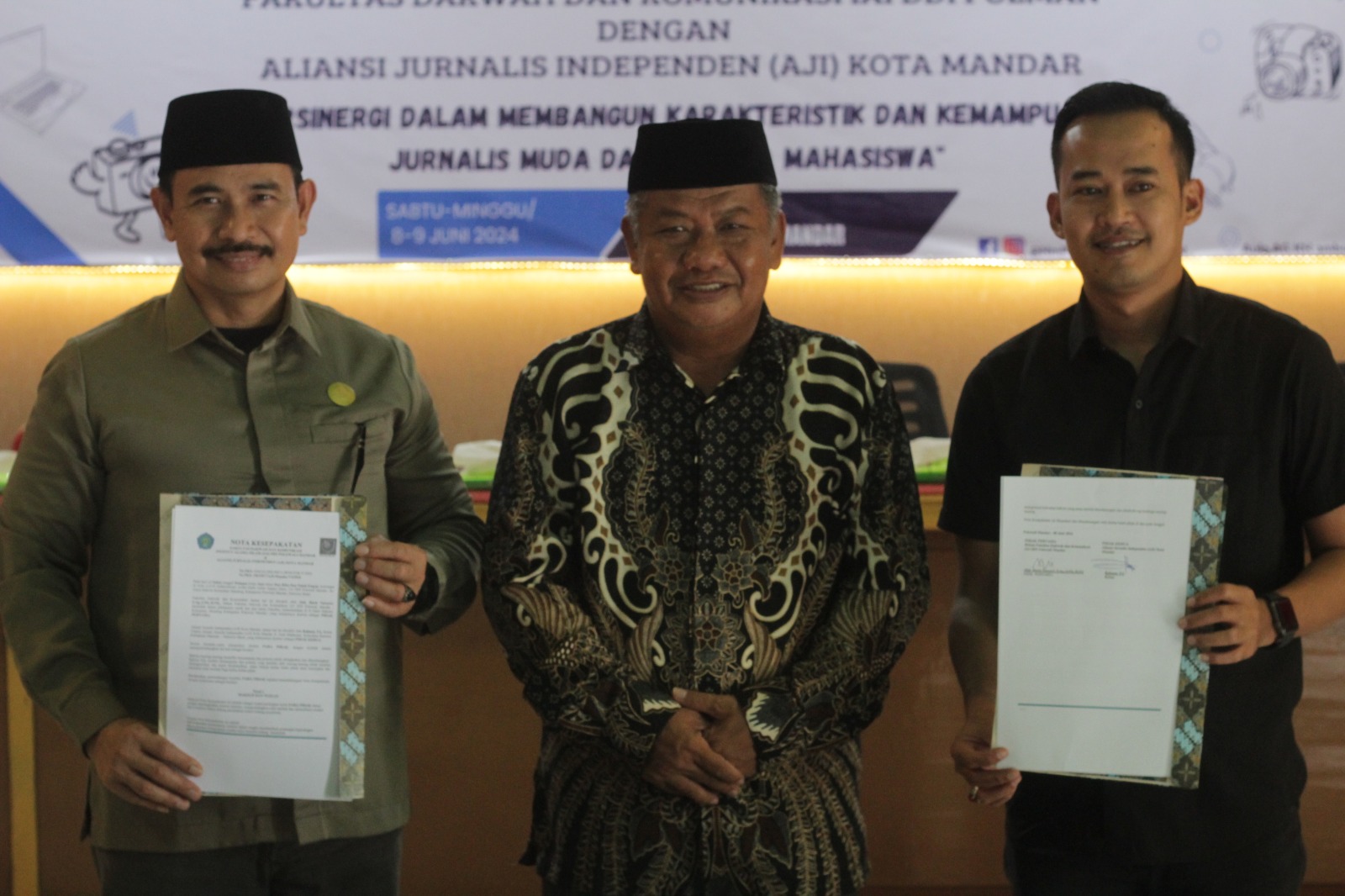 “Atas nama institusi mewakili rektor, tentu hasil penandatanganan Mou ini dari fakultas dakwah dengan AJI kota Mandar. Saya kira, kami sangat mendukung program, dimana didalamnya kita mau melihat anak-anak mahasiswa bisa melatih diri untuk membuat satu karakter, apalagi materinya ini pembentukan karakter didalamnya,” ungkap Marsuki.