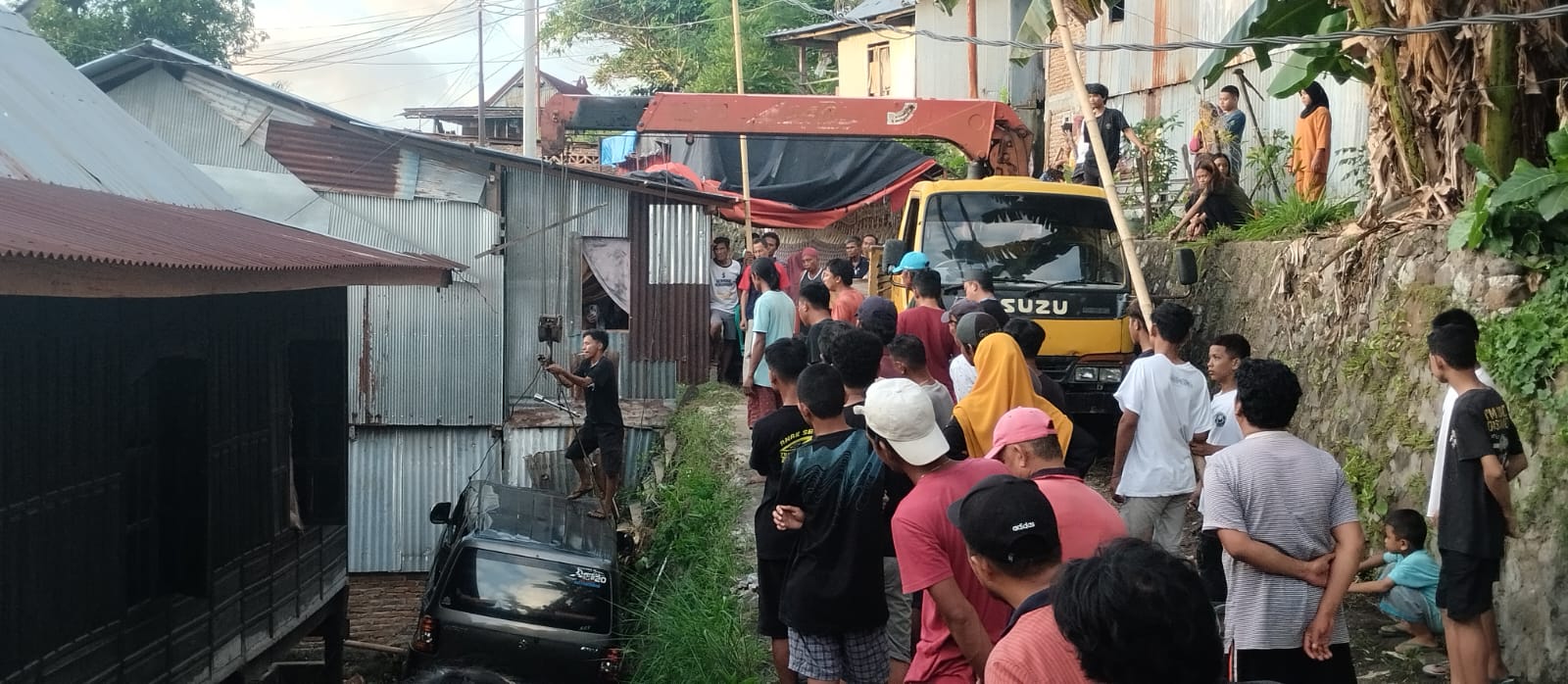 “Jadi kita harus angkat dan putar, supaya mengevakuasi (mobil) ini bisa bagus dan tidak mengena rumah warga,” ujar dia.