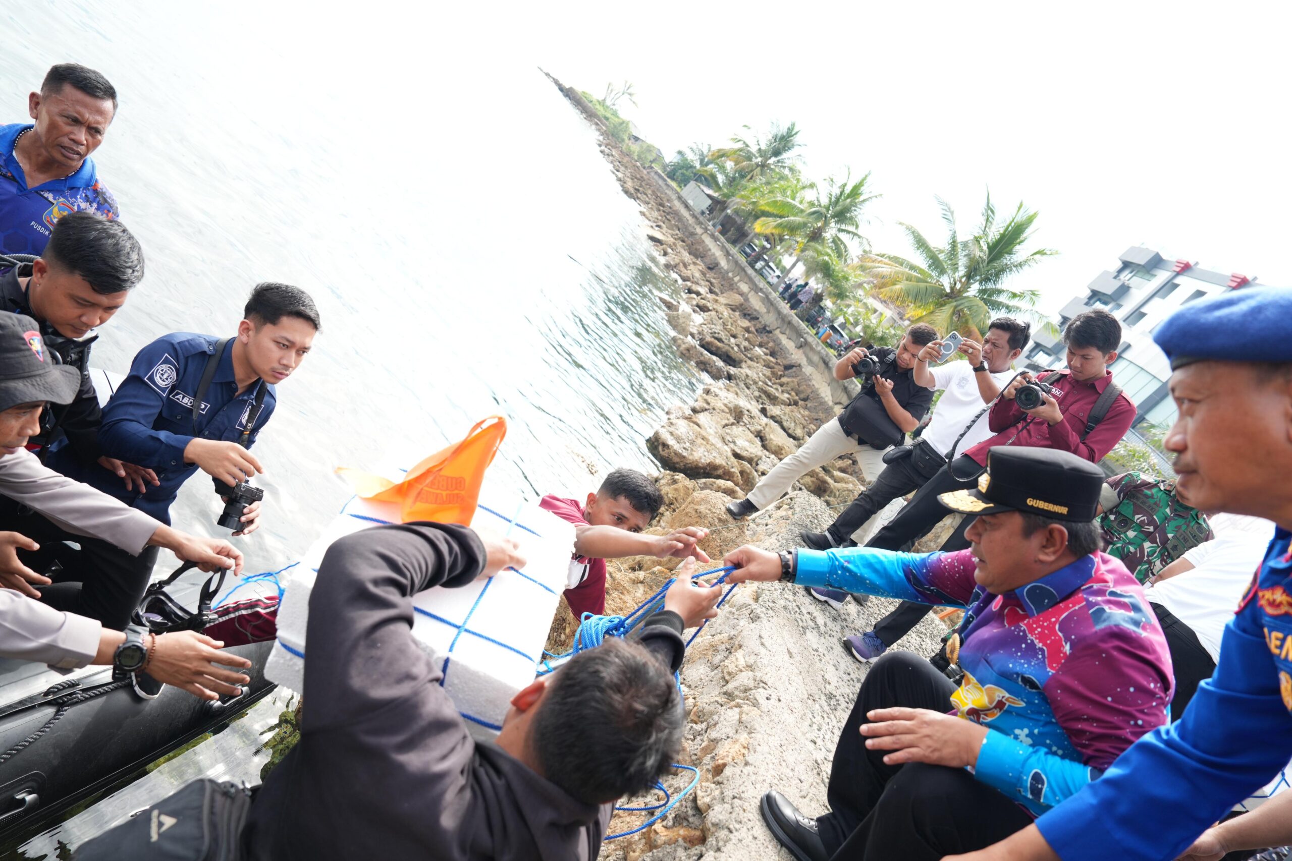 Sambut Hari Bhayangkara, Pemprov dan Polda Sulbar Pasang Rompong di Teluk Mamuju