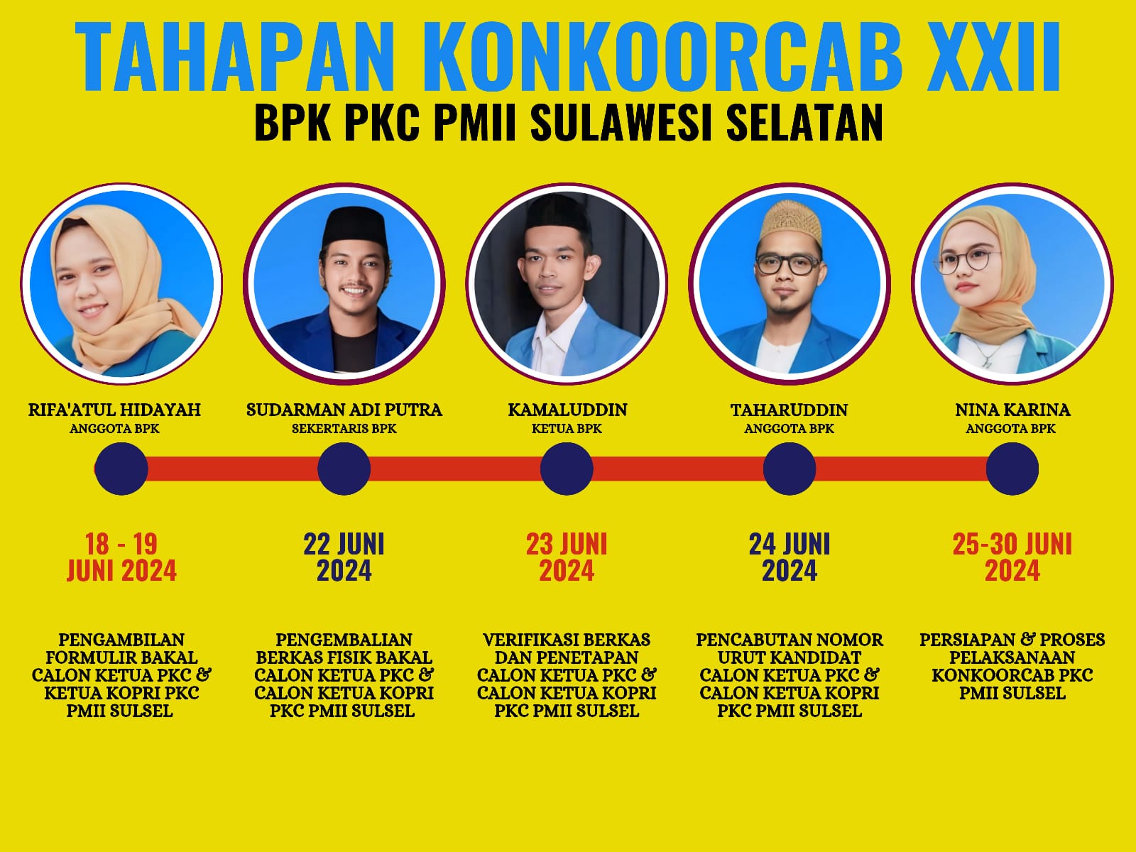 Ketua PKC PMII Sulsel, Muhtar Mursalim mengatakan tahapan BPK Konkoorcab XXII PKC PMII Sulsel, sejatinya merupakan proses penjaringan bakal calon ketua untuk periode mendatang, tahapan yang ada saat ini yang telah disepakati oleh BPK melalui pleno dan itu dipastikan tetap berlandaskan peraturan organisasi dan AD/ART.