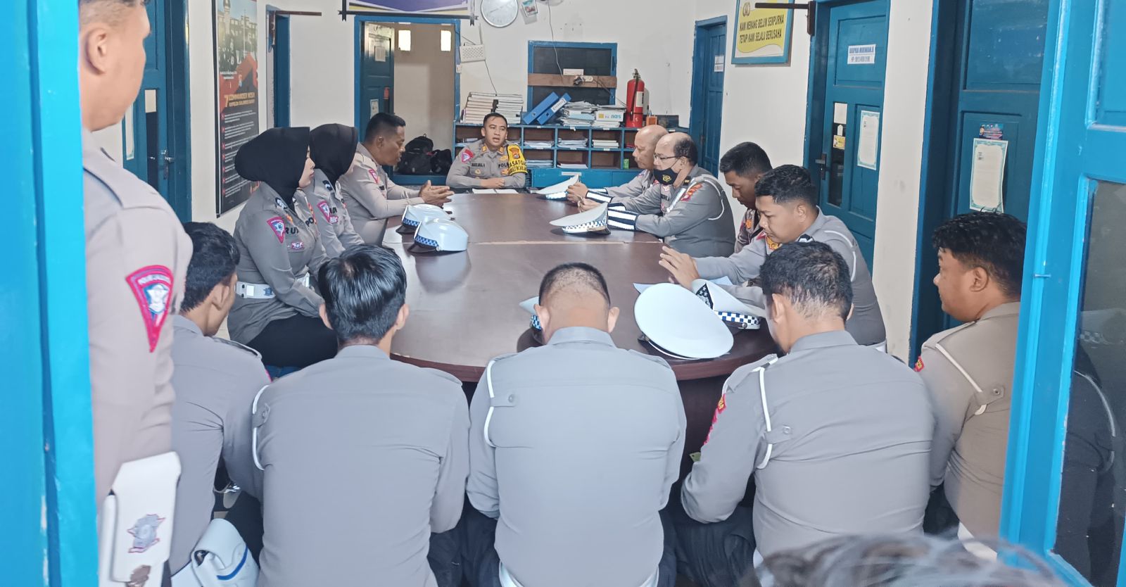 Personel Polresta Mamuju saat melakukan pertemuan soal Operasi Patuh Marano di Kantor unit pelayanan lalulintas, Satlantas Polresta Mamuju