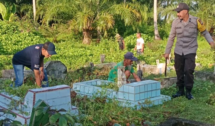Prihatin dengan Kuburan yang Sempit, Bhabinkamtibmas Polsek Tapalang Ajak Warga Baksos