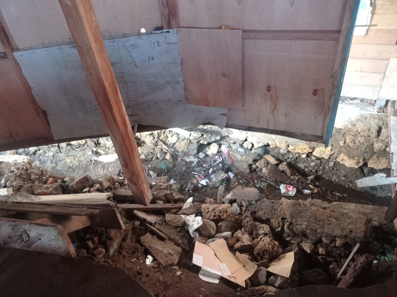 “Air dari gunung berdatangan dan pondasi yang menopang rumah bapak Abdullah P. Terkikis dan roboh akibat derasnya air, kondisi saat ini akses untuk keluar rumah terhalang karena penghubung antara rumah dan jalanan putus,” tuturnya.