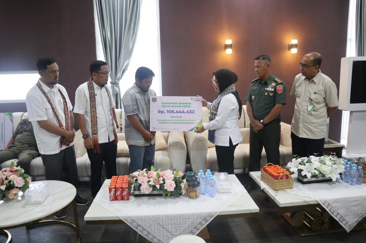 MAMUJU, Analysis.co.id – Ahli waris Almarhum Muhajar, Salah seorang tenaga kebersihan pada DLHK Mamuju, yang meninggal dunia usai mengalami kecelakaan, hari ini menerima santunan dari BPJS Ketenaga Kerjaan yang diserahkan oleh Bupati Mamuju Dr.Hj.Sitti Sutinah Suhardi,bersama Kepala BPJS Ketenaga Kerjaan Provinsi Sulawesi Barat, Makmur. Rabu (11/9/2024).