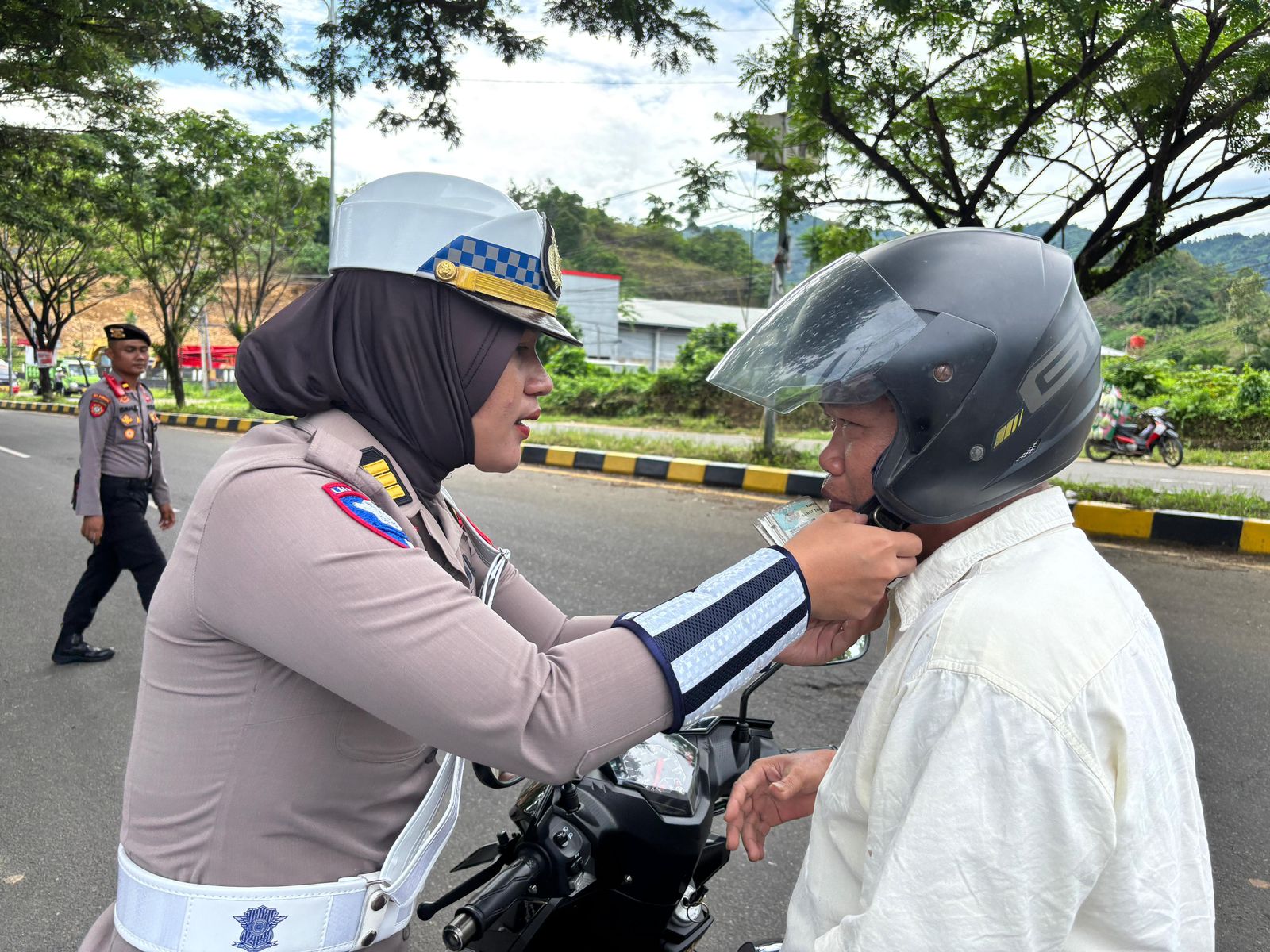Personel Ditlantas Polda Sulbar kembali melakukan razia di berbagai titik lokasi, salah satunya di Jalan Ir. Juanda, Kelurahan Mamunyu, Kabupaten Mamuju. Selain memeriksa setiap pengendara yang melintas, para petugas juga memberikan himbauan penting untuk meningkatkan kesadaran keselamatan di jalan raya.