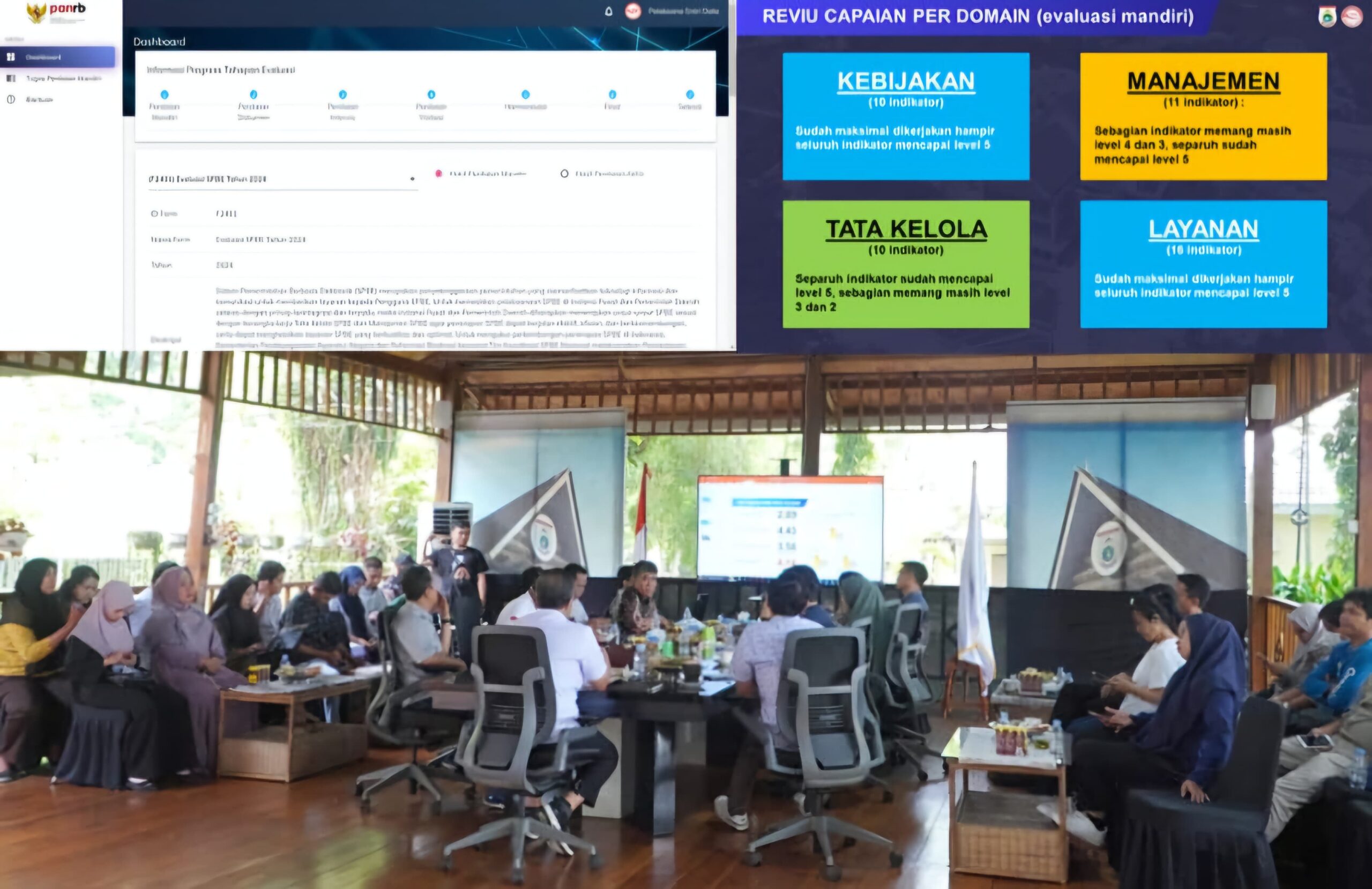 Kabid Aplikasi Informatika Dinas Kominfo, Muhammad Ridwan Djafar yang mewakili kepala dinas saat rapat menyampaikan nilai hasil evaluasi dokumen SPBE oleh evaluator masih bersifat sementara.