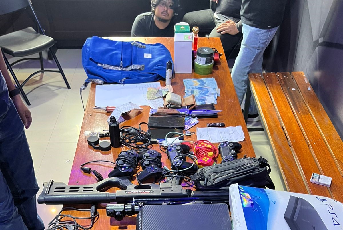 Saat diamankan petugas, AF mengakui perbuatannya dan petugas juga mengamankan sejumlah barang bukti yang diduga kuat dari hasil kejahatannya berupa uang Uang tunai Rp. 2.150.000 (sisa hasil penjualan emas), dua buah Handphone, senapan angin, pisau sangkur, Play Station 4, 5 Stick Play Station, sebuah kepingan emas logam mulia dan 3 Tas Ransel.