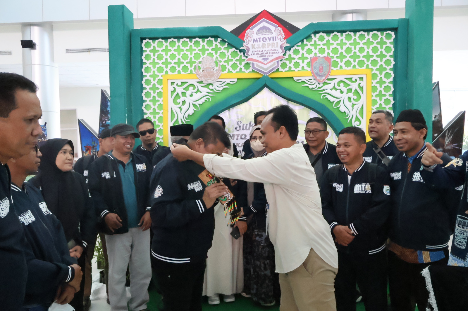 Panitia MTQN VII Korpri tahun 2024 menyambut rombongan kafilah perwakilan Sulbar dengan adat budaya Kalteng.