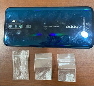 Saat diamankan, RA ditemukan sedang menguasai satu buah sachet plastik bening klip warna putih berisi dua buah sachet plastik bening klip warna putih yang diduga berisi sabu. Barang bukti tersebut ditemukan di dalam kantong motor Honda Scoppy warna biru dengan nomor polisi DC 2153 CY yang dikendarai oleh RA.