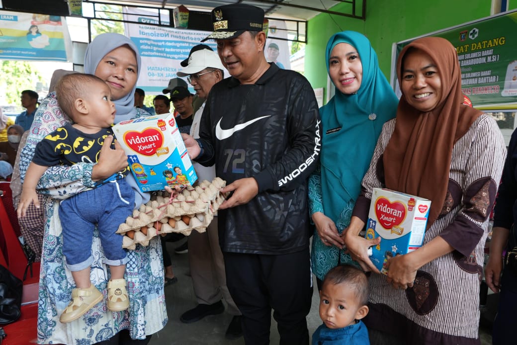 ANALYSIS.CO.ID, Polman –Penjabat Gubernur Provinsi Sulawesi Barat Bahtiar Baharuddin bersama PJ Ketua Tim Penggerak PKK Sulbar Sofha Marwah Bahtiar, PJ Bupati Polman Ilham Borahima menyerahkan bantuan paket makanan tambahan bergizi di UPTD PKM Wonomulyo, Polman.