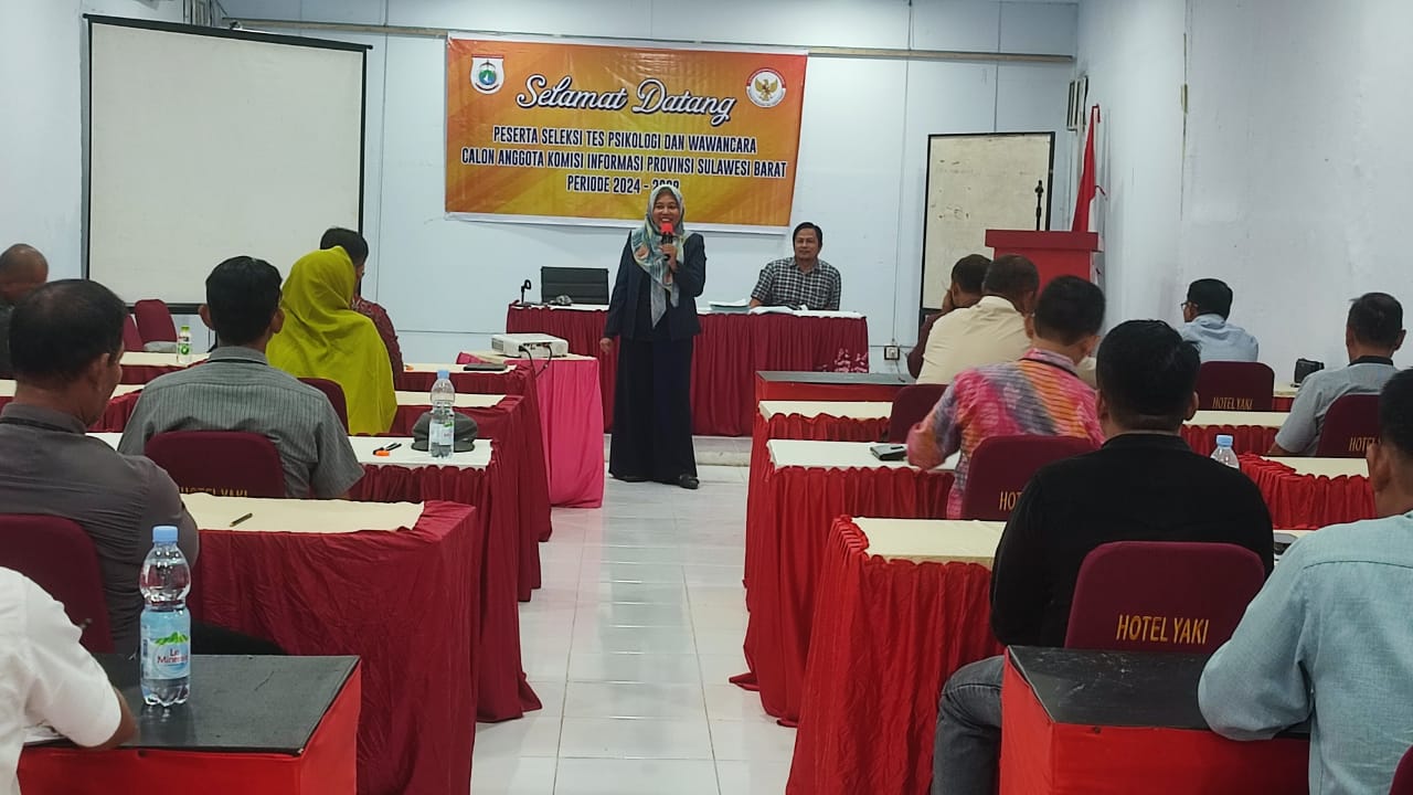 ANALYSIS.CO.ID, Mamuju – Calon anggota Komisi Informasi Provinsi (KIP) Sulawesi Barat periode 2024-2028 mengikuti tes psikologi yang dilaksanakan tim seleksi di Hotel Yaki Mamuju, Minggu (08/12/2024).