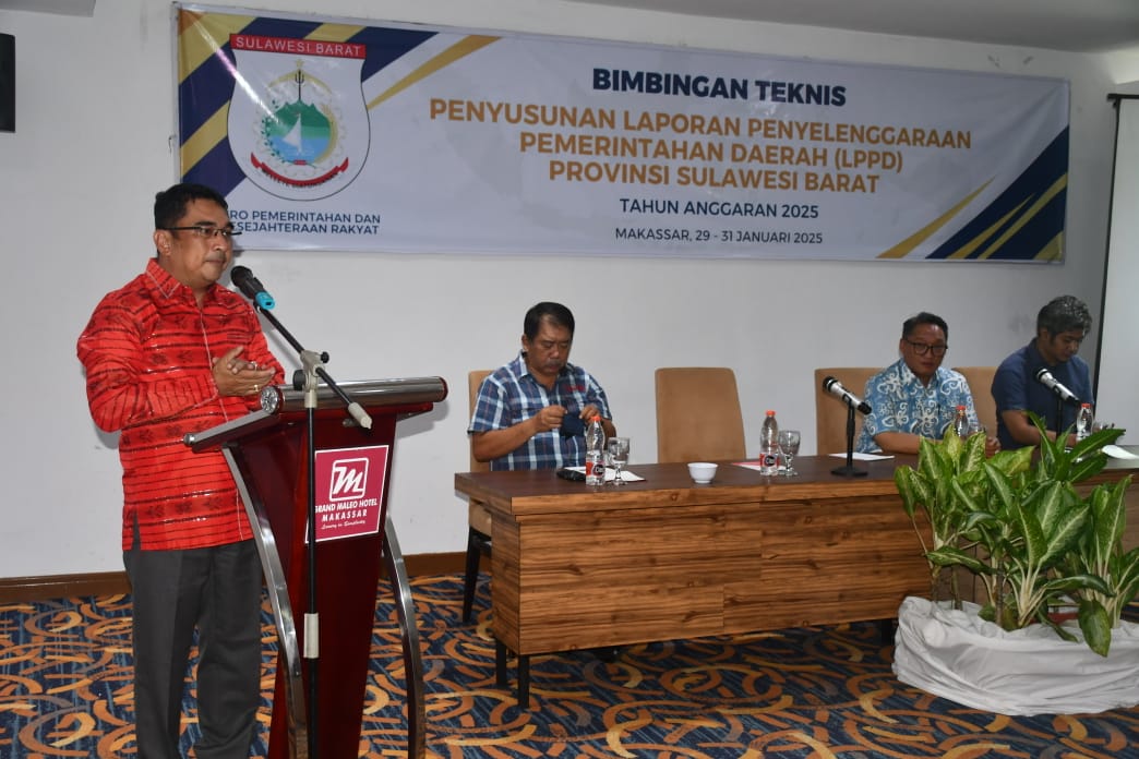 ANALYSIS.CO.ID, Mamuju – Pj Sekprov Sulbar, Amujib didampingi Karo Tapem Sulbar, membuka secara resmi Bimbingan Teknis Penyusunan Laporan Penyelenggaraan Pemerintahan Daerah (LPDP) Provinsi Sulawesi Barat tahun anggaran 2025, di Hotel Maleo Makassar, 29-31 Januari 2025.
