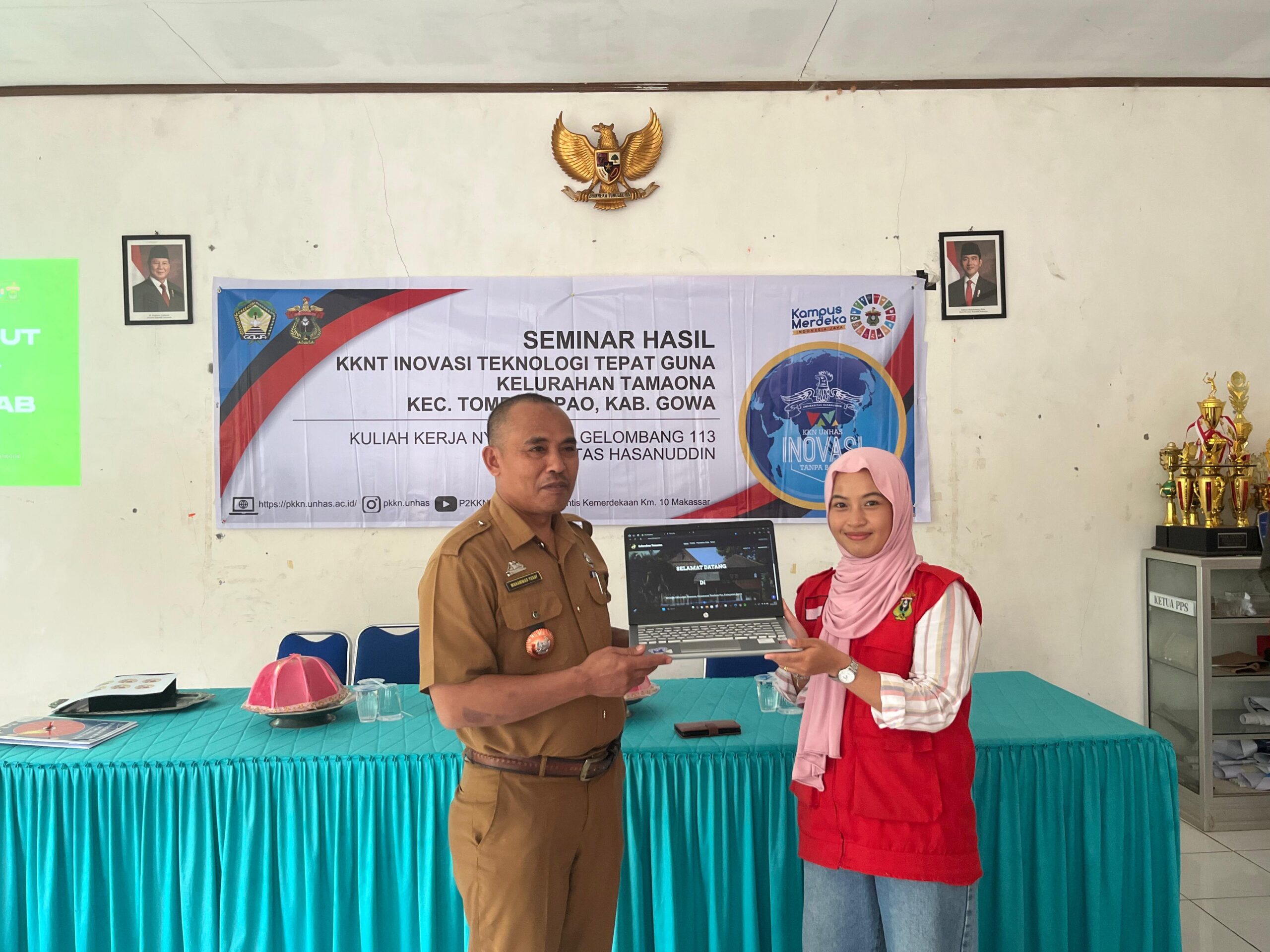 ANALYSIS.co.id, Gowa – Mahasiswa Kuliah Kerja Nyata Tematik (KKNT) Gelombang 113 Universitas Hasanuddin (Unhas) menyerahkan secara simbolis website kepada Kelurahan Tamaona, Kelurahan Tombolopao, Kabupaten Gowa.