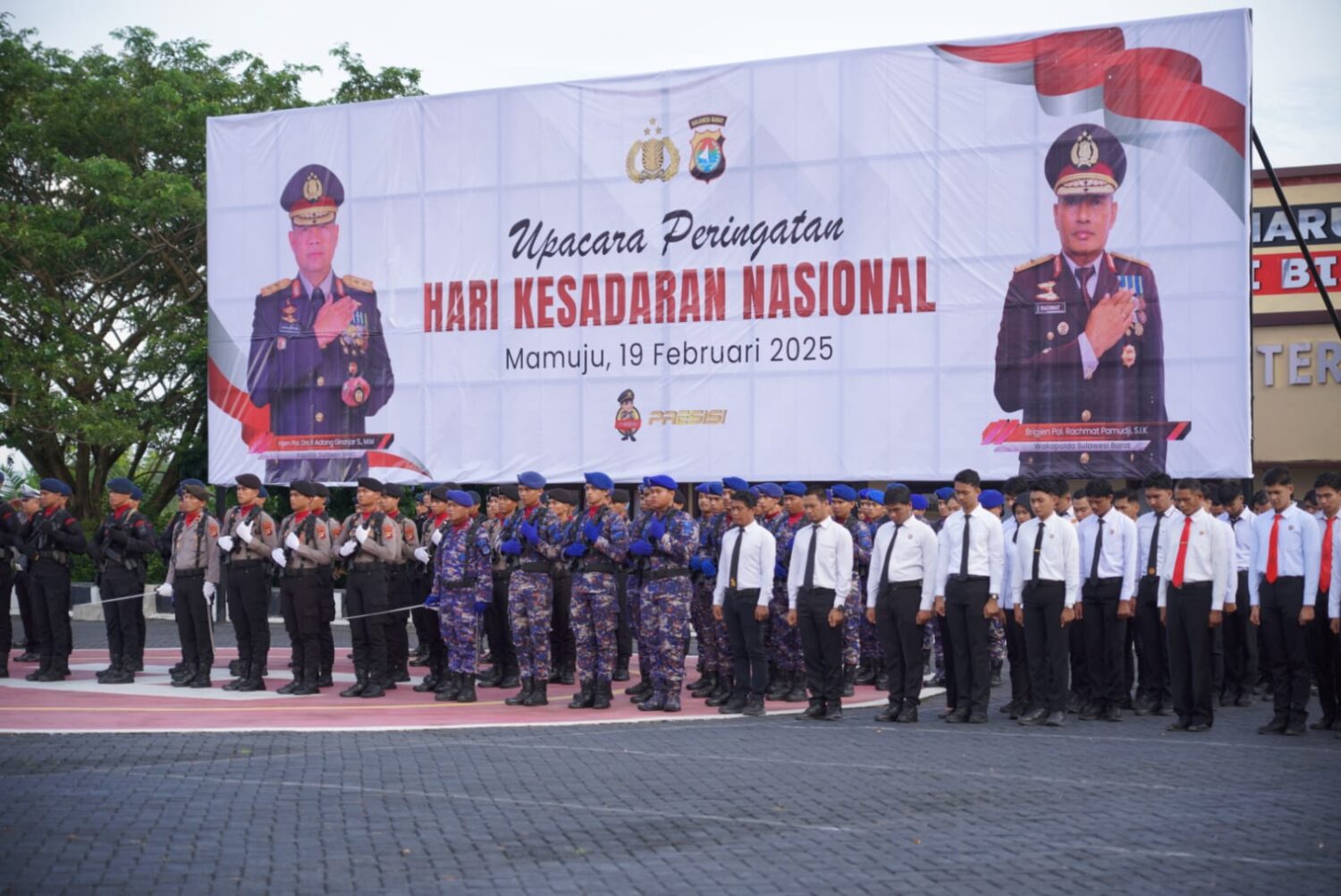ANALYSIS.CI.ID, Mamuju – Kepolisian Daerah Sulawesi Barat (Polda Sulbar) menggelar upacara Hari Kesadaran Nasional di Lapangan Tribrata Mapolda Sulbar, Rabu (19/02/2025).