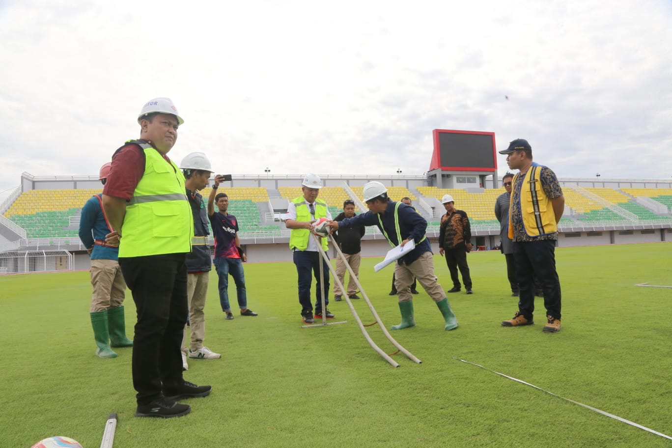 Sejumlah aspek yang diuji di antaranya kelentingan, guliran bola sampai penyerapan air di atas rumput Stadion BJ Habibie.