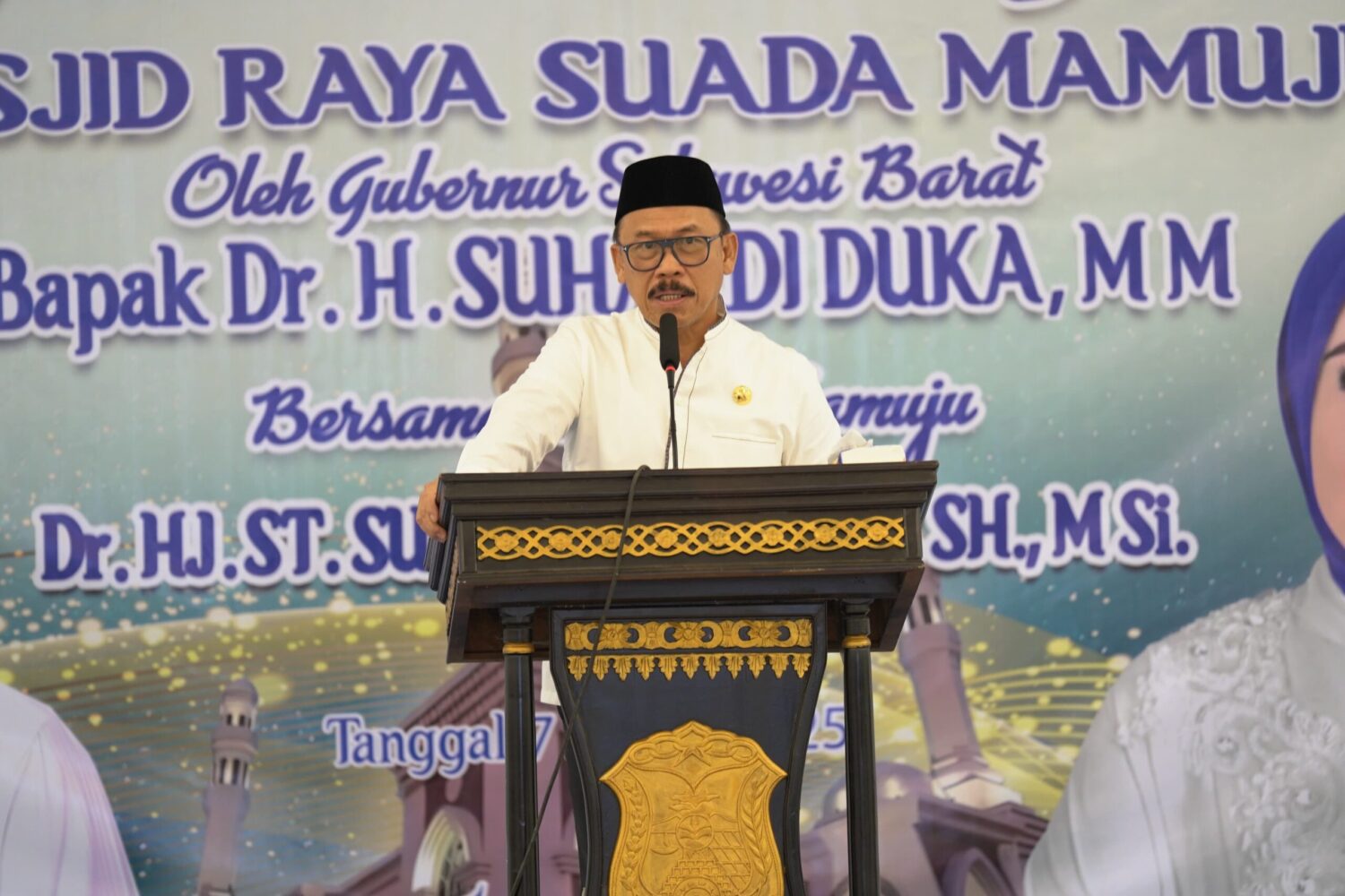 Dalam sambutannya, Gubernur Suhardi Duka mengisahkan perjalanan pembangunan Masjid Raya Suhada Mamuju.