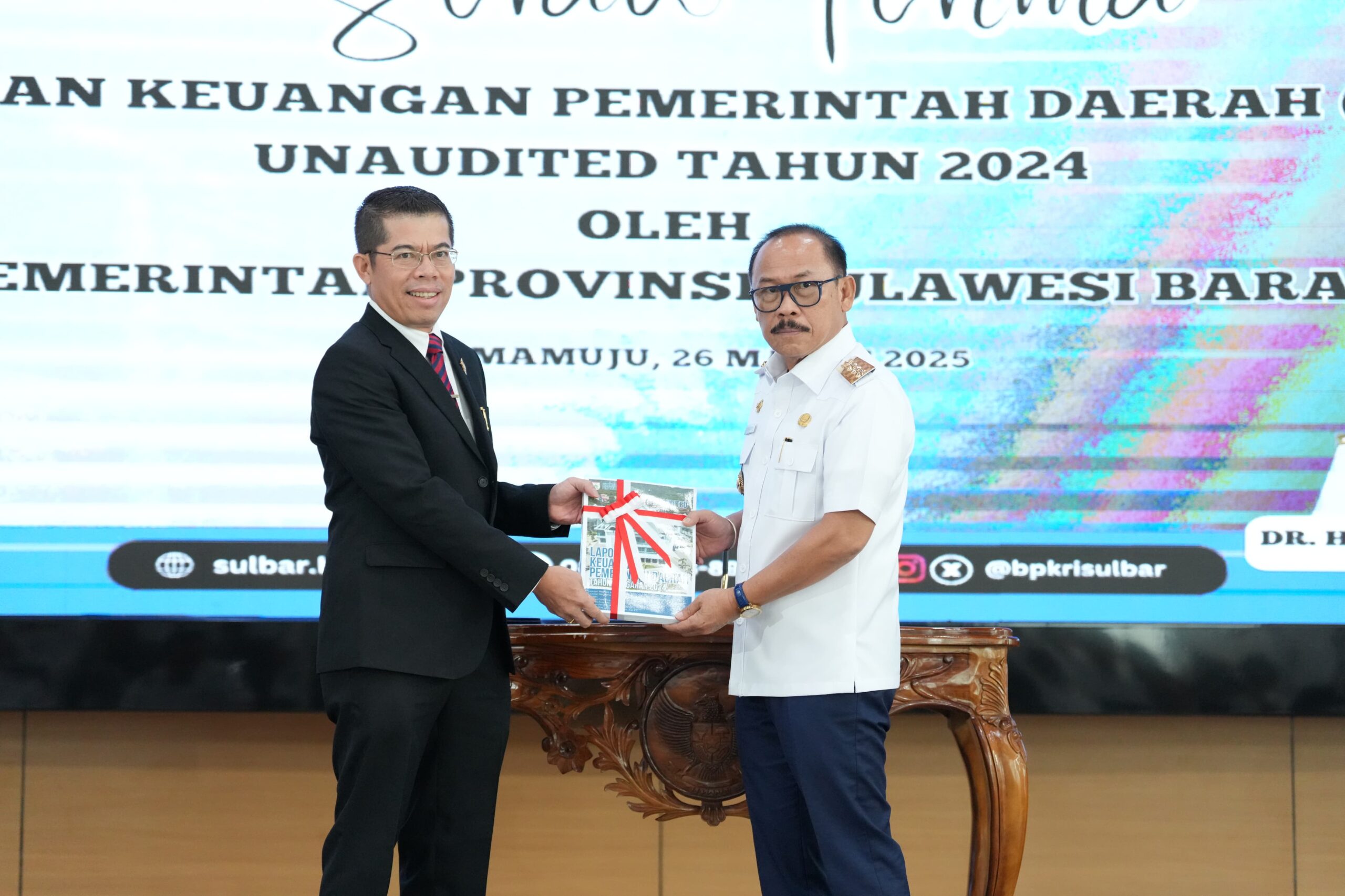 Analysis.co.id, Mamuju – Pemerintah Provinsi Sulawesi Barat (Pemprov Sulbar) beserta empat Pemerintah Kabupaten (Pemkab) menyerahkan laporan keuangan ke Badan Pemeriksa Keuangan (BPK) RI Perwakilan Sulbar, Rabu (26/3/2025).