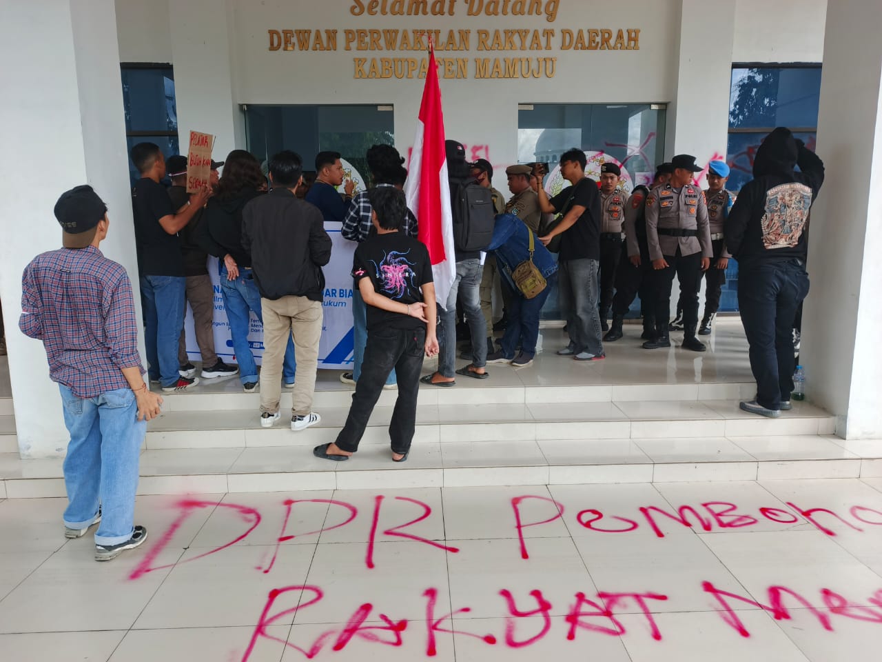 Coretan protes massa aksi di sejumlah gedung dan lantai DPRD Mamuju.