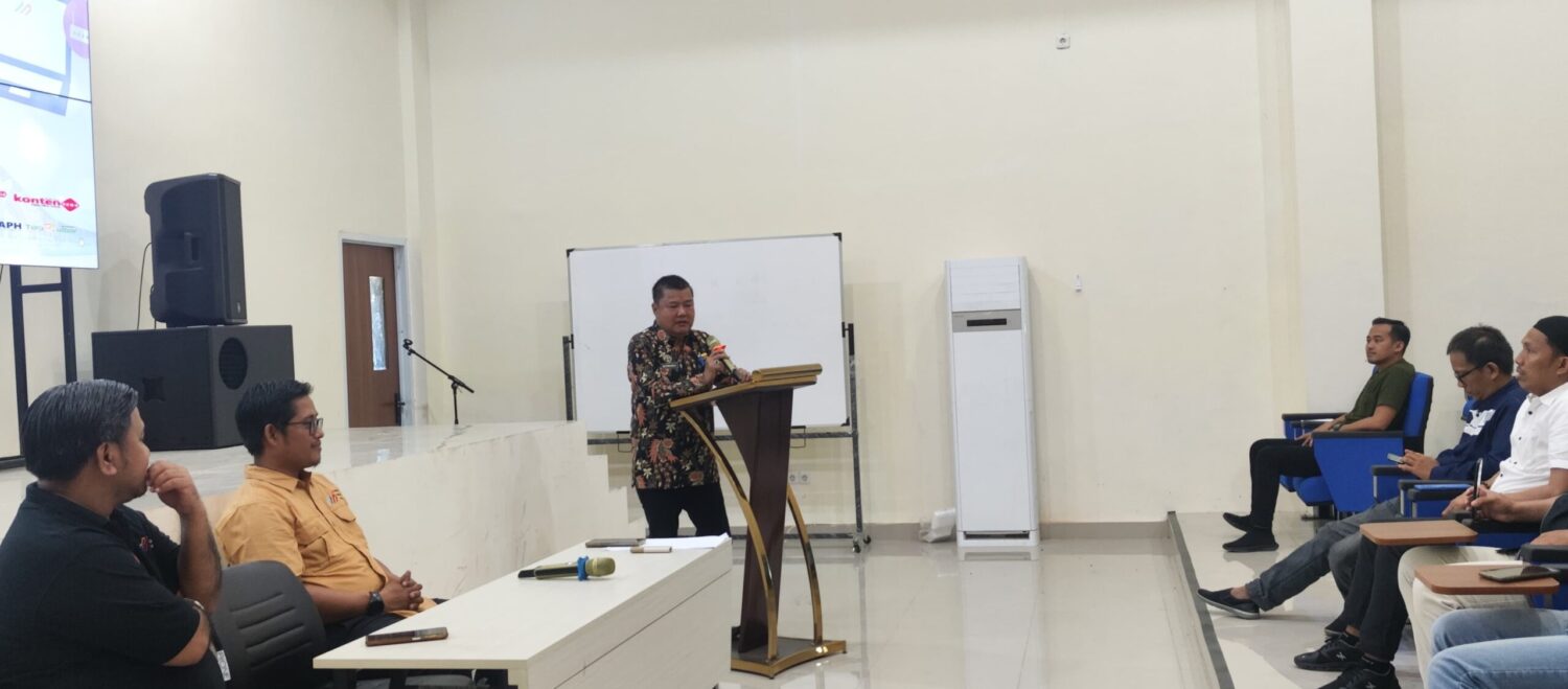 Kadis Kominfopers Sulbar, Mustari Mula saat membuka Konferwil Ke-III AMSI Sulbar di Aula Perpustakaan Mamuju.