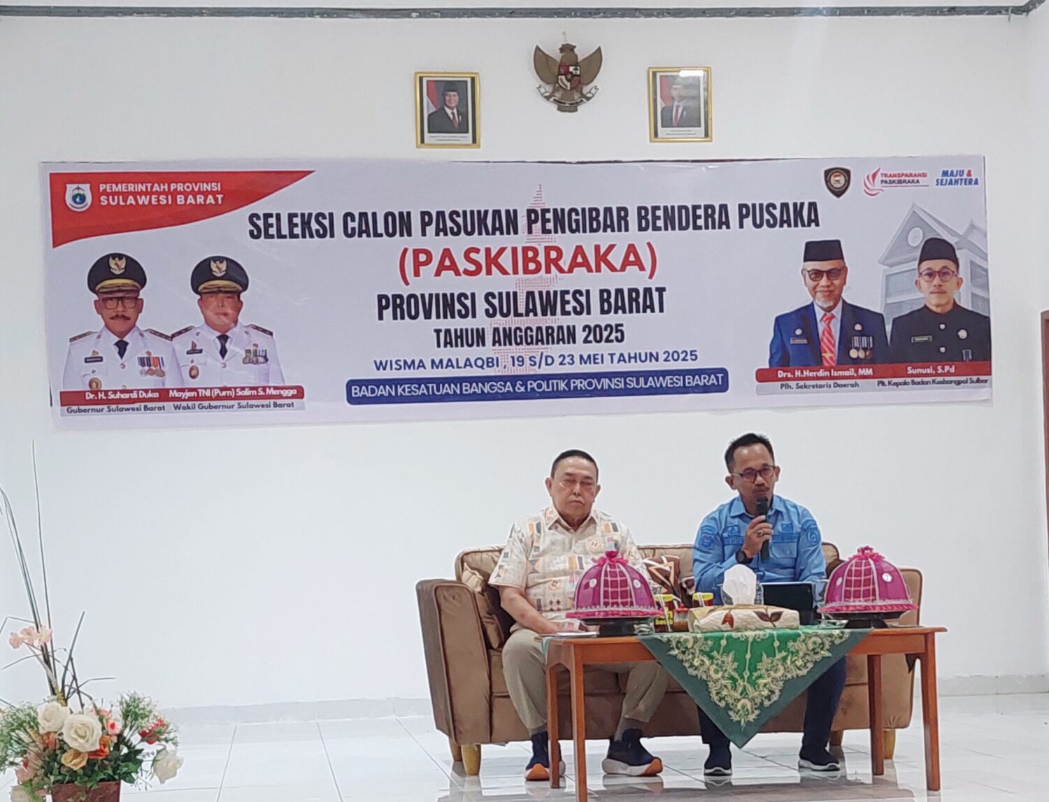 ANALYSIS.CO.ID, Mamuju – Kepala Badan Kesatuan Bangsa dan Politik (Kesbangpol) Sulawesi Barat (Sulbar), Sunusi, menegaskan bahwa proses seleksi calon Pasukan Pengibar Bendera Pusaka (Paskibraka) tingkat provinsi tahun 2025 ini dilaksanakan sesuai dengan peraturan perundang-undangan yang berlaku.
