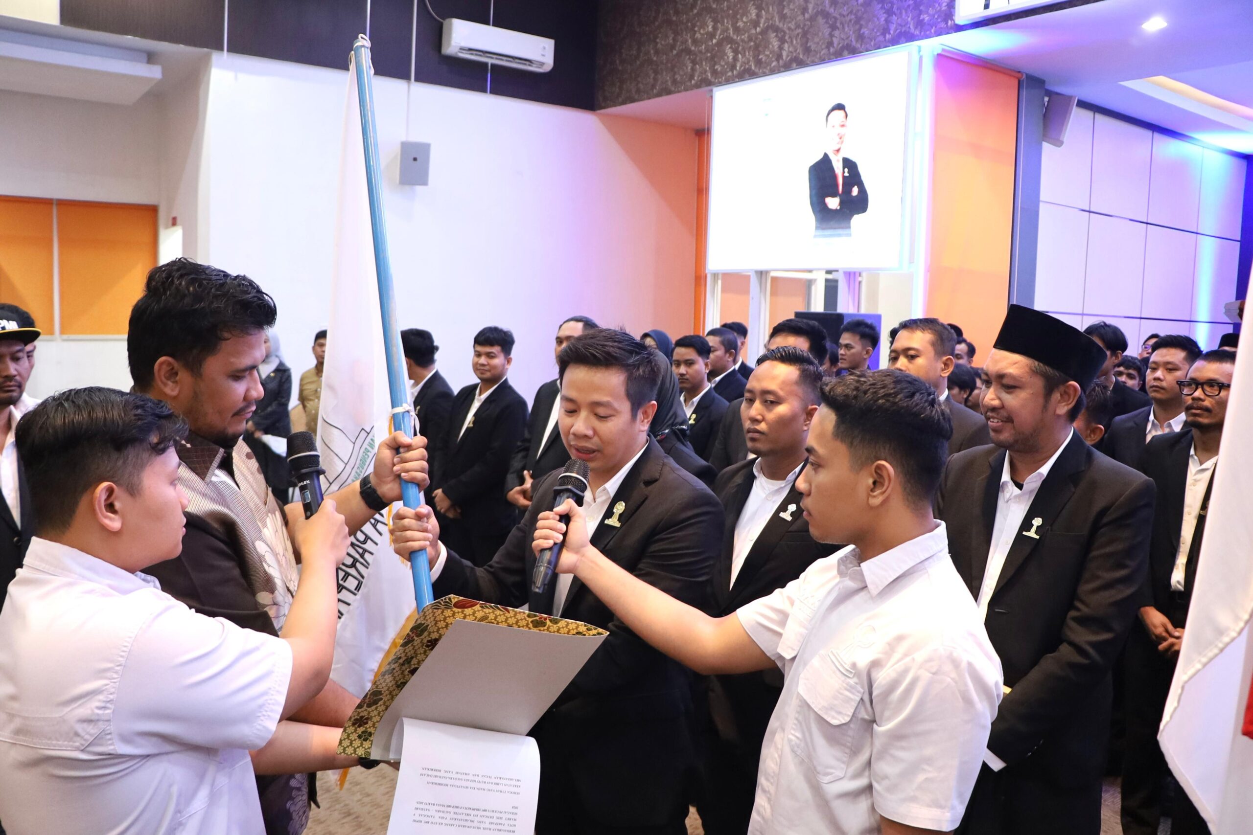 Prosesi pelantikan, Ketua Umum BPD HIPMI Sulawesi Selatan (Sulsel) Andi Amar Ma’ruf serta Wali Kota Parepare Tasming Hamid.