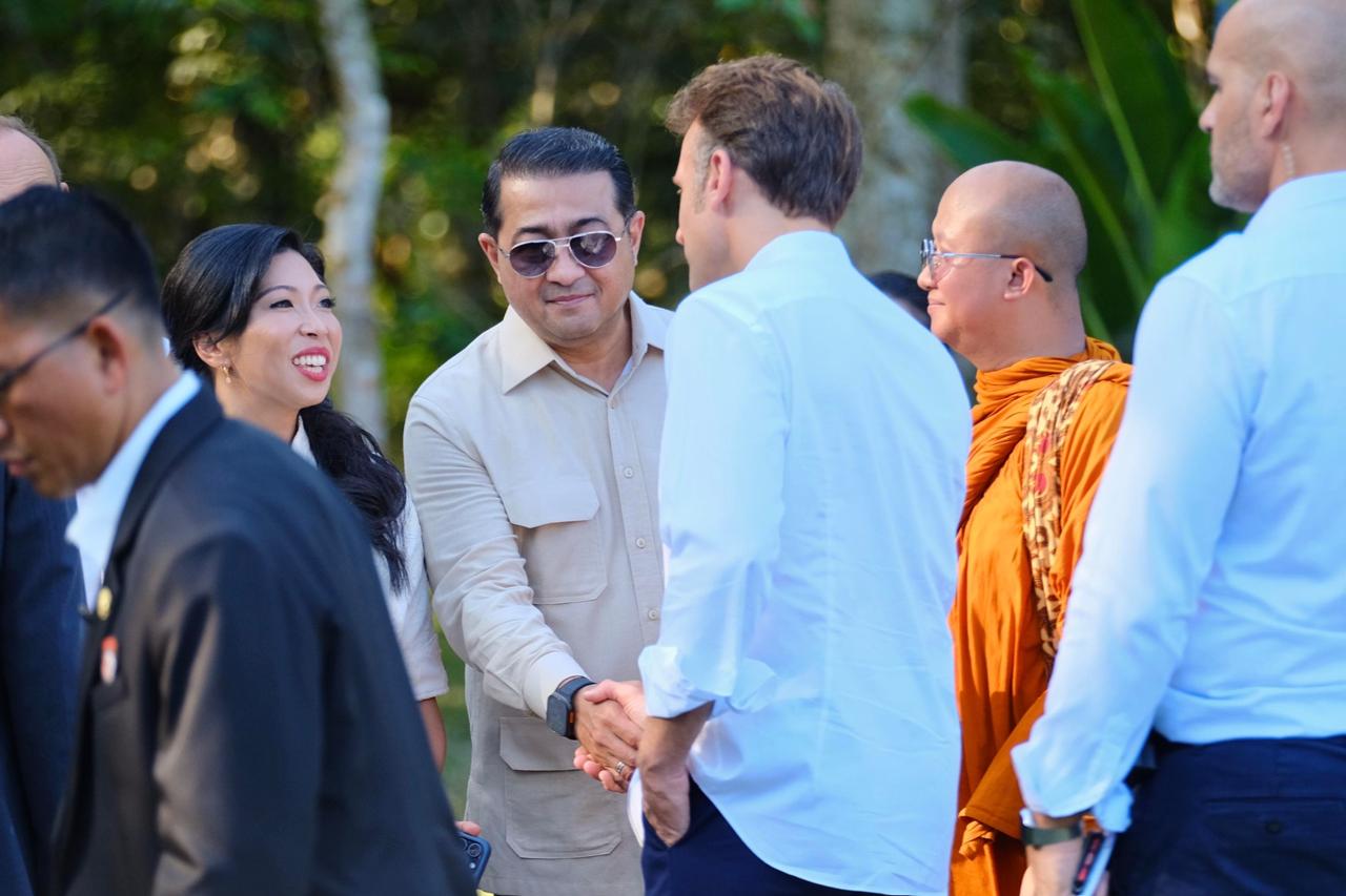 Presiden Macron yang didampingi oleh Presiden Prabowo tiba di komplek Borobudur pukul 14:00 WIB dan langsung disambut oleh Menteri Ekonomi Kreatif, Teuku Riefky Harsya, sebelum akhirnya berkeliling melihat situs Warisan Dunia ini.