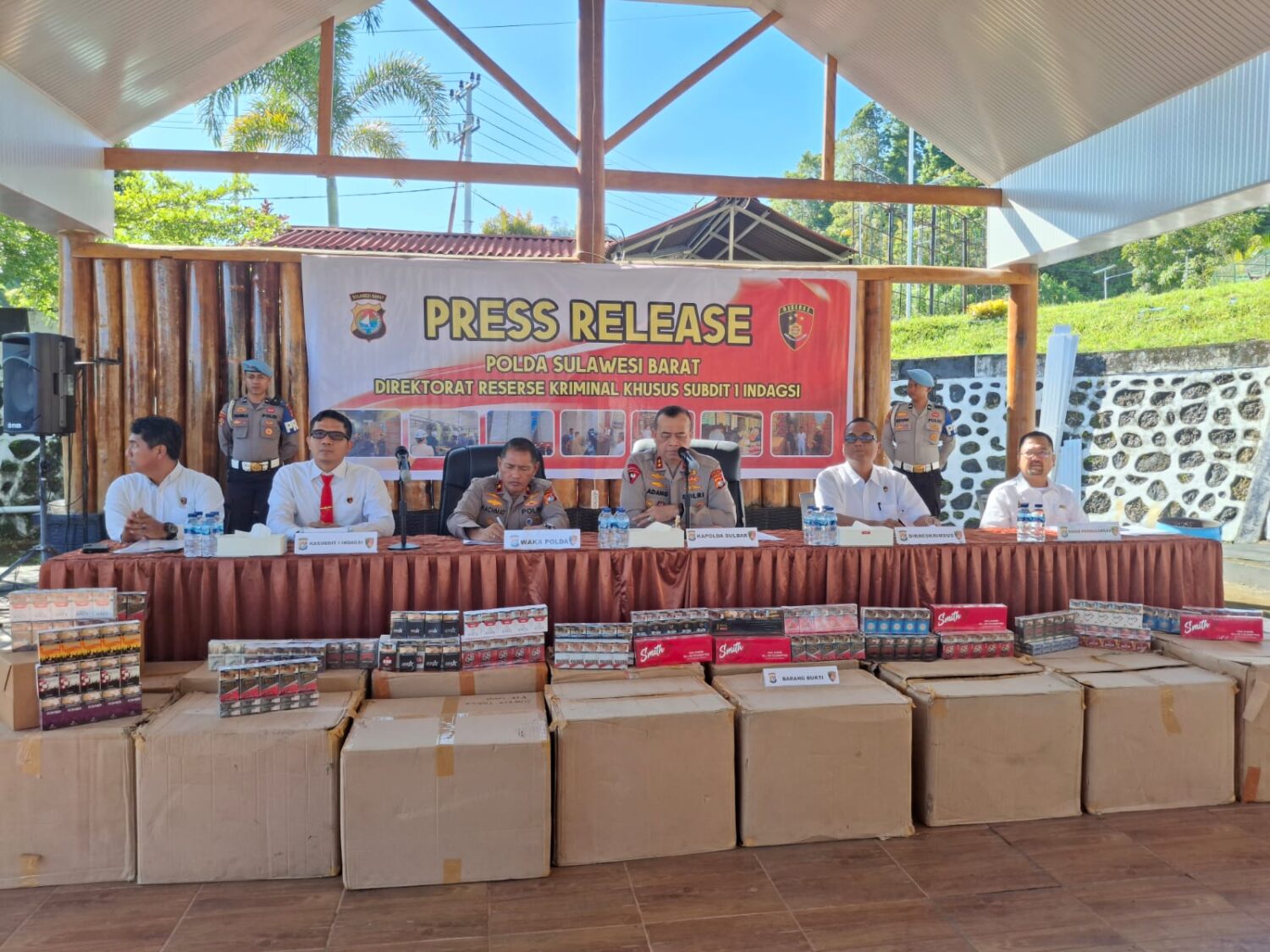 Pengungkapkan peredaran rokok ilegal di seluruh wilayah Sulbar, berlangsung di lapangan Tribrata Polda Sulbar yang dipimpin langsung Kapolda Sulbar, Irjen Pol Adang Ginanjar.