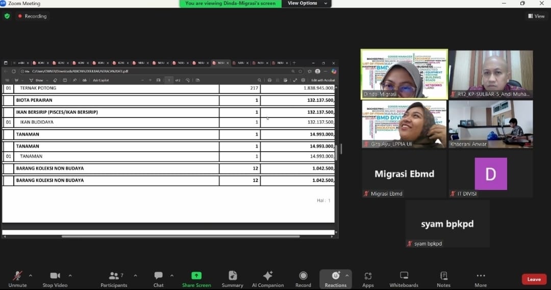 Dalam kegiatan ini, BPKPD Sulbar diwakili oleh Kepala Bidang Milik Daerah, A. Bisyri M Noor, didampingi staf terkait. Proses rekonsiliasi dilakukan untuk memastikan data Barang Milik Daerah (BMD) yang dimigrasikan dari sistem lama ke sistem baru berjalan dengan baik, akurat, dan sesuai dengan kebutuhan tata kelola aset pemerintah daerah.