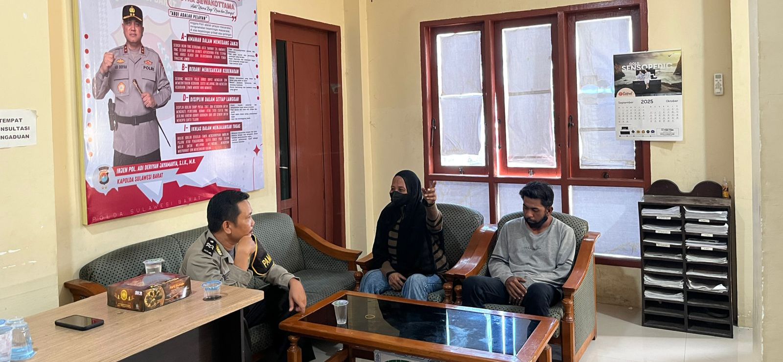 Kedua orang ini, yang tidak memiliki identitas saat ditemukan, kini ditampung sementara di ruang istirahat petugas Kepolisian Resor Kota (Polresta) Mamuju sambil menanti jadwal kapal menuju Kalimantan. Jumat (24/10/2025).