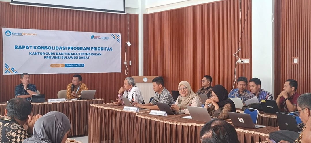 ANALYSIS.ID, Mamuju – Dalam rangka mendukung Visi dan Misi Gubernur Sulawesi Barat Suhardi Duka dan Wakil Gubernur Salim S. Mengga, Badan Pengelolaan Keuangan dan Aset Daerah (BPKAD) Provinsi Sulawesi Barat yang diwakili oleh Plt. Sekretaris, Faika Kadriana Ishak dan Plt. Kepala Bidang Anggaran dan Bina Kabupaten Abd. Kuddus menghadiri Rapat Konsolidasi Program Prioritas yang diselenggarakan oleh Kantor GTK Provinsi Sulawesi Barat, Kamis, 26 Februari 2026, bertempat di Aula Rapat Lantai II Kantor GTK Sulbar.