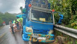 Polisi Olah TKP, Truck Bermuatan Cat di Malunda Tabrak Pembatas Jalan