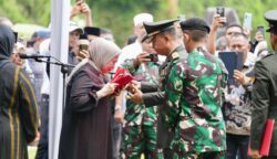 Momen Haru Hj. Fatmawati Salim Terima Lipatan Merah Putih Usai Upacara Pemakaman Militer