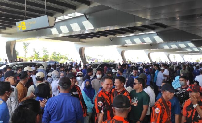 #Bandara Tampapadang Sesak di Penuhi Massa