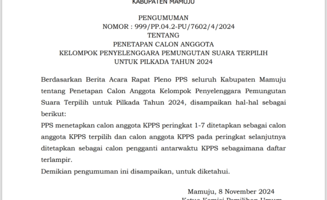 Pilkada 2024, KPU Mamuju Resmi Menetapkan Calon Anggota KPPS Se Kabupaten