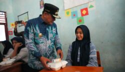 Uji Coba Makan Siang Bergizi Gratis di SMPN 1 Simboro, Pj Bahtiar Juga Bantu Alat Sekolah