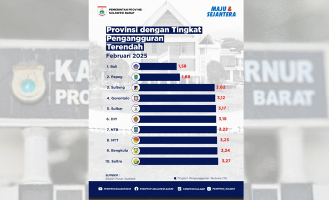 BPS Sulbar Catat Tingkat Pengangguran Terendah ke-5 Nasional